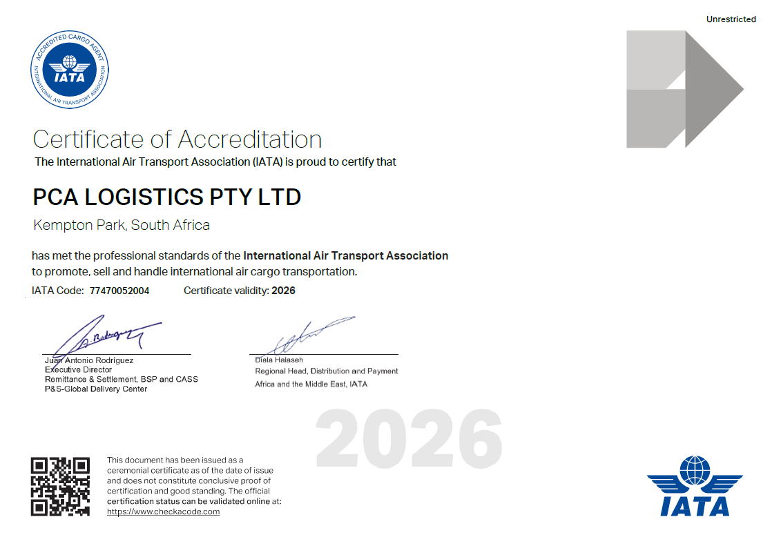 PCA Logistics has met the professional standards of the International Air Transport Association.